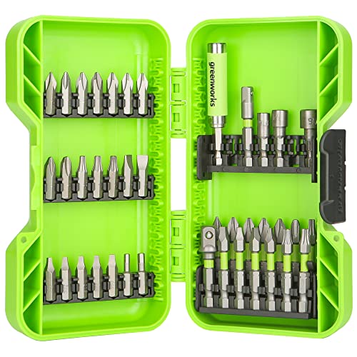 Greenworks 40 Piece Impact Rated Driving Set,Screwdriver Bit Set,Precision-Milled Bit,Modular Case,Magnetic Bit Holder
