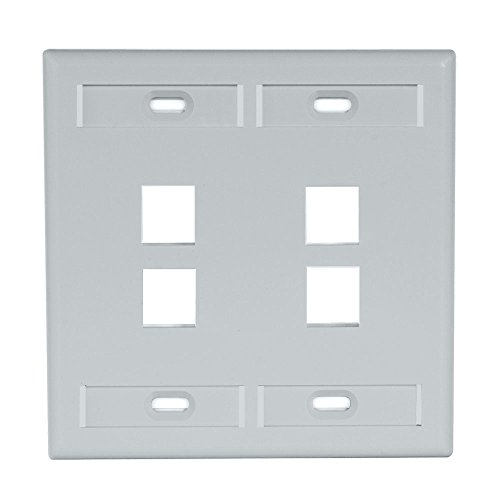 Leviton 42080-4GP 4-Port Dual Gang QuickPort Wallplate with ID Windows, Grey