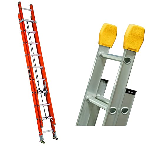 Louisville Ladder FE3232 Fiberlass Step Ladder 300-Pound Duty Rating, 32 Feet, Orange & LP-5510-00 Series Extension Pro-Guards/Ladder Covers, Yellow