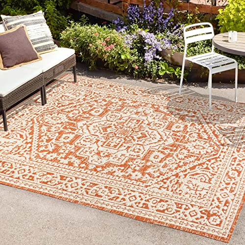 JONATHAN Y SMB101F-8 Sinjuri Medallion Textured Weave Indoor Outdoor Area Rug, Bohemian Traditional Transitional Easy Cleaning,Bedroom,Kitchen,Backyard,Patio,Non Shedding, 8 X 10, Orange/Cream