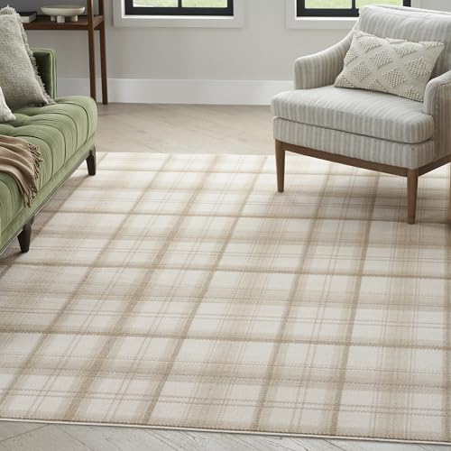 Nourison Grafix Plaid Ivory Beige 7'10" x 9'10" Area Rug, Easy Cleaning, Non Shedding, Bed Room, Living Room, Dining Room, Kitchen (8x10)