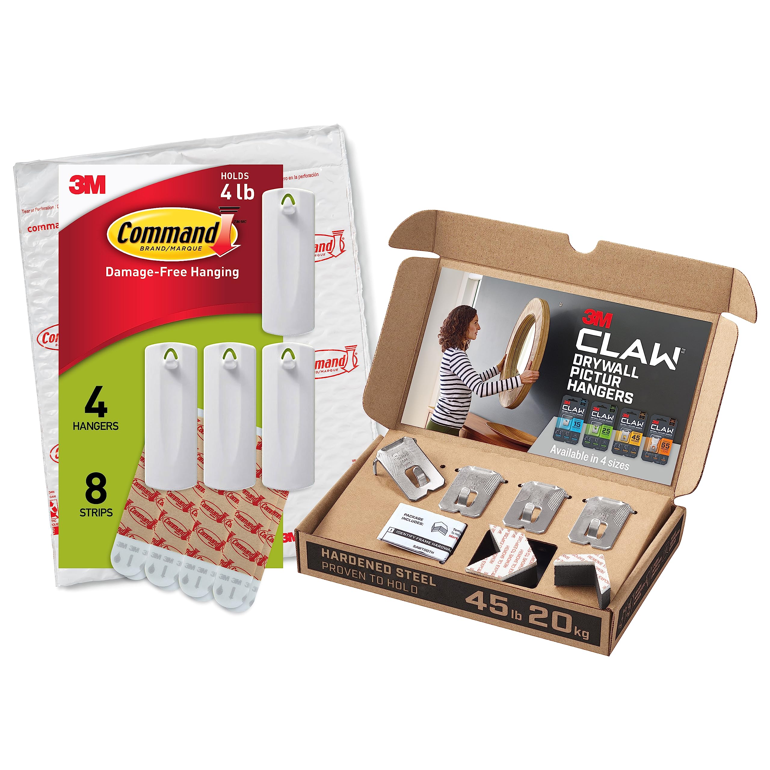 3M CLAW Drywall Picture Hangers holds 45 lb. & Command Sawtooth Picture Hangers, White, 4-Hangers