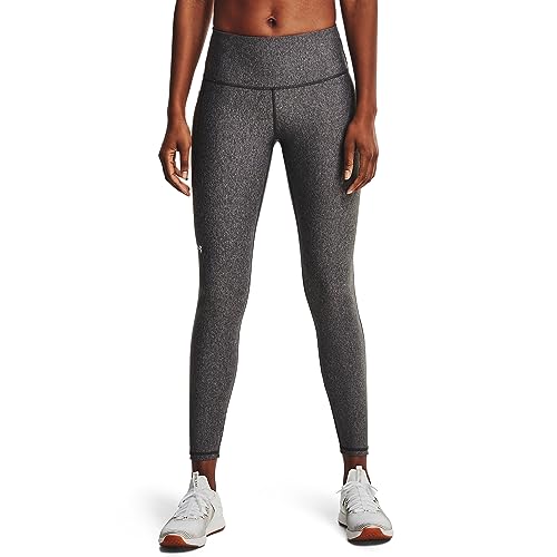 Under Armour Women's Standard HeatGear High No-Slip Waistband Pocketed Leggings, Charcoal Light Heather (019)/White, Medium Tall
