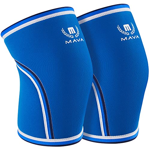 Mava Sports Pair of Knee Compression Sleeves Neoprene 7mm for Men & Women for Weightlifting, Cross Training WOD, Squats, Gym Workout, Powerlifting (Blue, S)