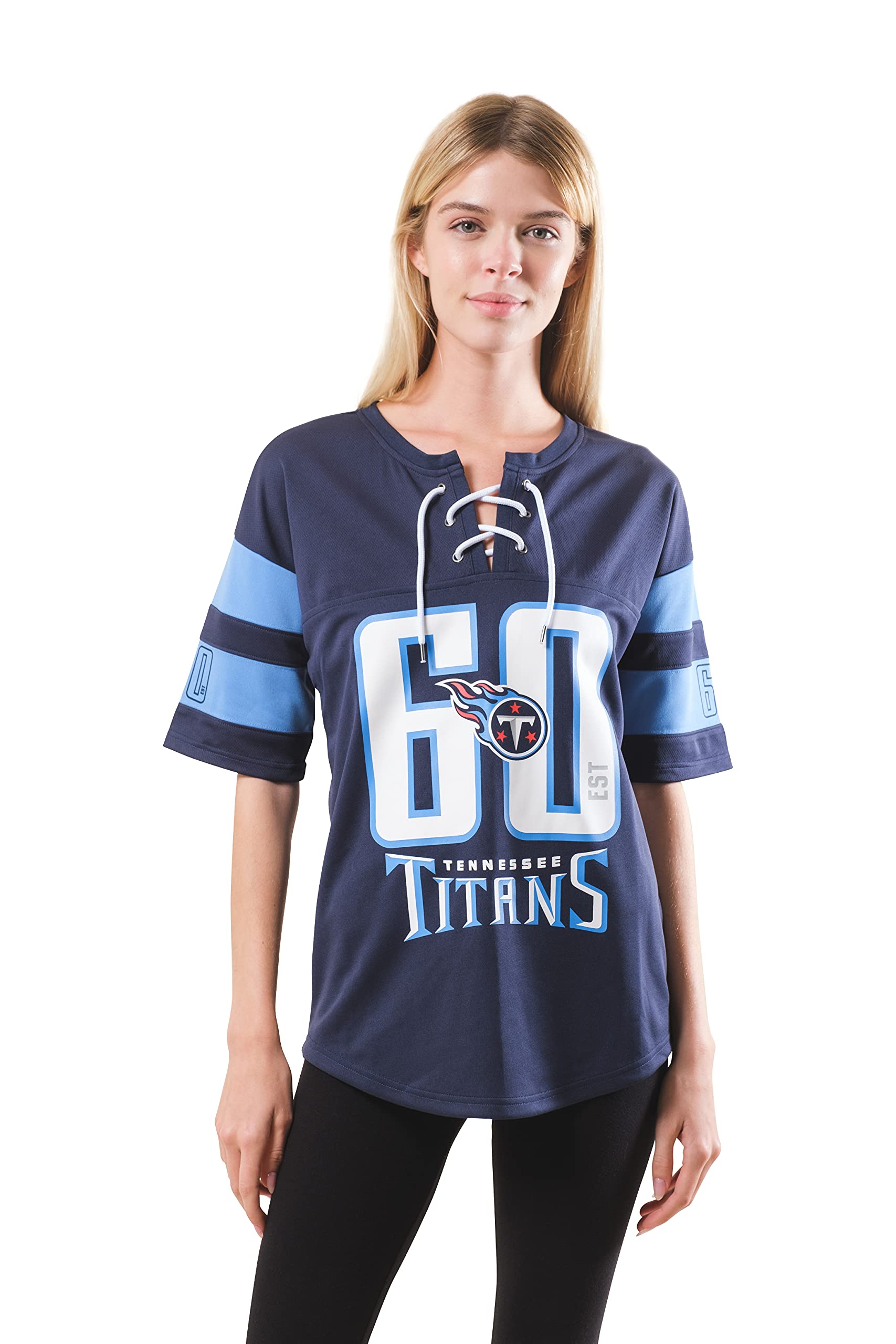 Ultra Game NFL Women's Soft Mesh Lace Up Jersey T-Shirt, Tennessee Titans, Team Color, Small