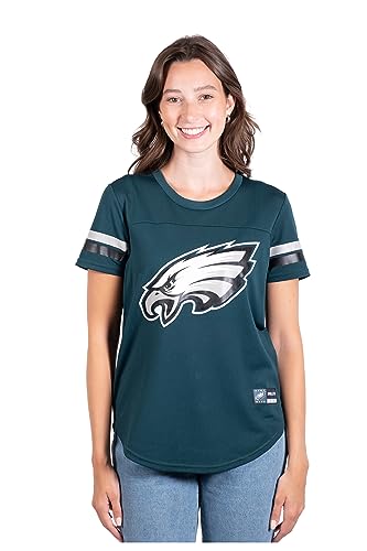 Ultra Game NFL Philadelphia Eagles Womenss Soft Mesh Jersey Varsity Stripe Jock Tag Crew Neck Tee Shirt Top, Team Color, Medium