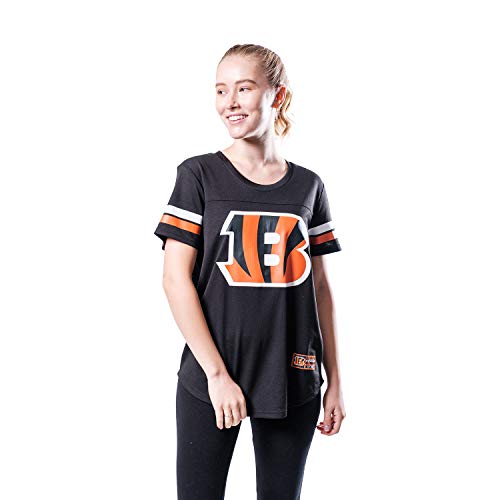 Ultra Game NFL Cincinnati Bengals Womenss Soft Mesh Jersey Varsity Stripe Jock Tag Crew Neck Tee Shirt Top, Team Color, Large