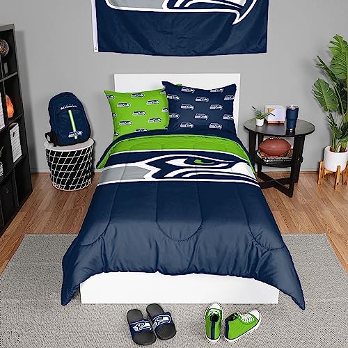FOCO Seattle Seahawks NFL Team Color Bed In a Bag Comforter Bedding 3 Piece Full Set
