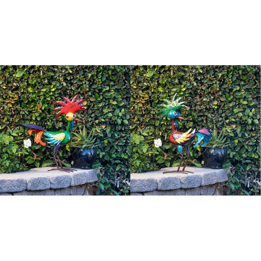 Alpine Corporation 18" Tall Indoor/Outdoor Wacky Metal Rooster Yard Statue Decoration & MZP390 Glossy Rooster Statue Outdoor Garden, Patio, Deck, Porch-Yard Art Decoration, 7" L x 16" W x 19" H