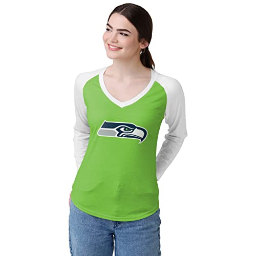 FOCO Women's NFL Team Ladies Fashion Raglan Top Shirt, Big Logo Solid, X-Large