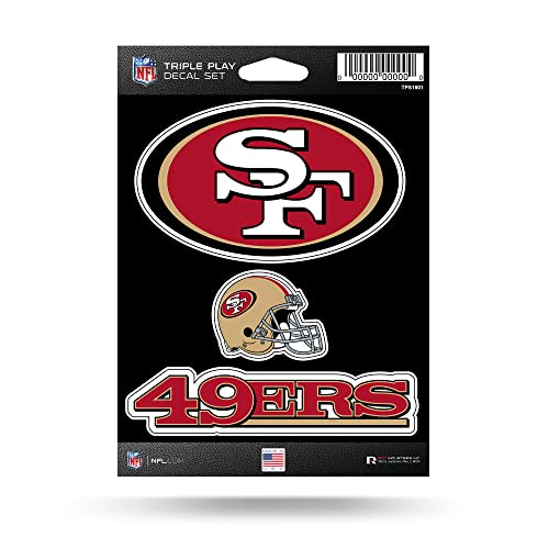 Rico Industries NFL Football San Francisco 49ers Triple Play Decal Set 5" x 7" (3 Decals), White