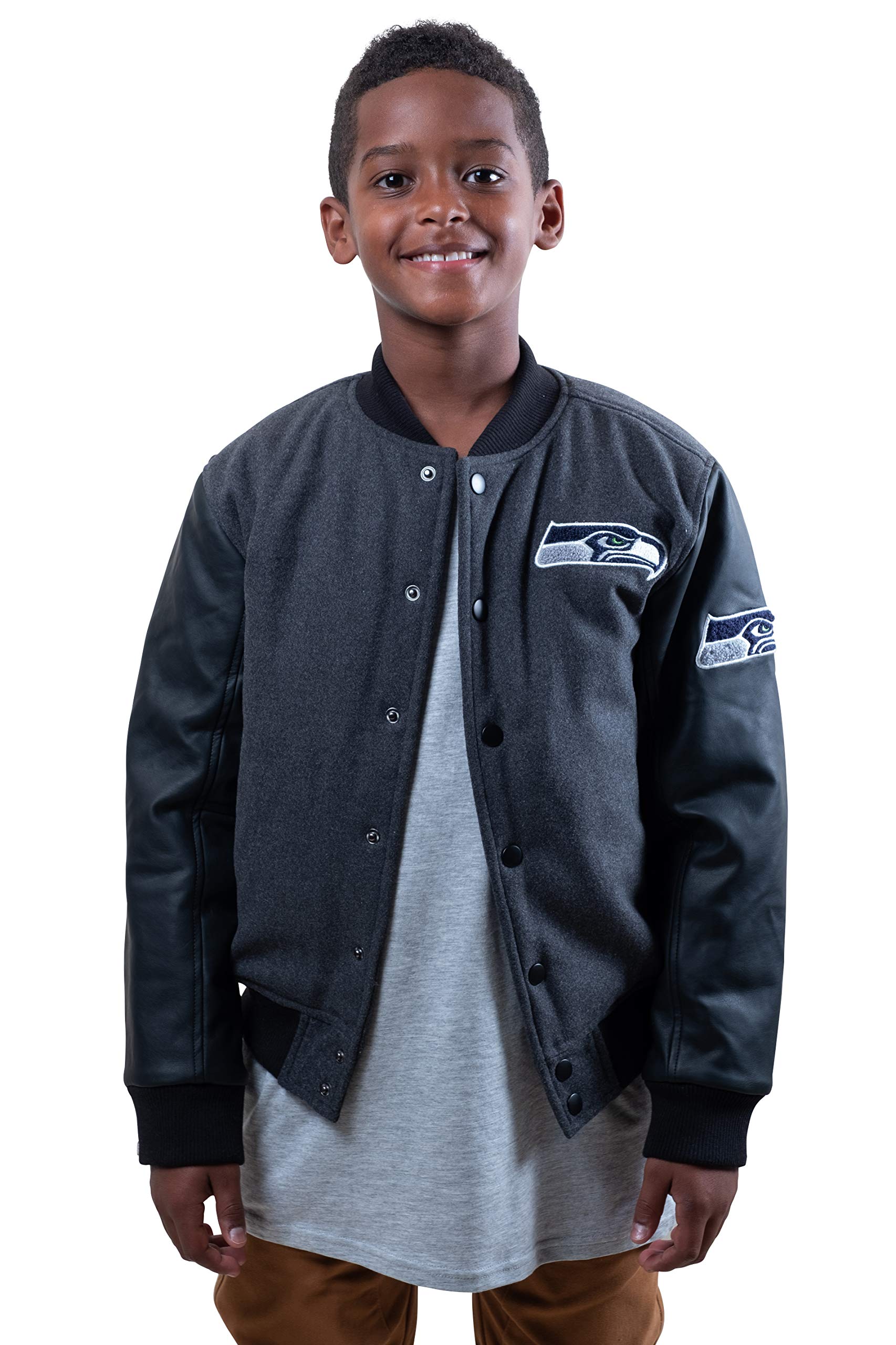 Ultra Game NFL Boys Classic Baseball Varsity Jacket, Charcoal, 10-12