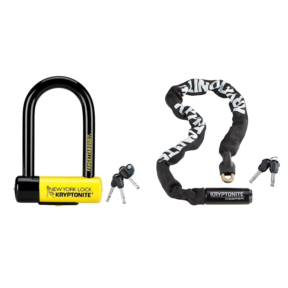 Kryptonite New York Fahgettaboutit Mini Bike U-Lock & Keeper 785 Bike Chain Lock, 2.8 Feet Long Heavy Duty Anti-Theft Bicycle Chain Lock with Keys