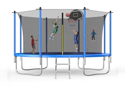 EMKK Tranpoline with Basketball Hoop 12FT Outdoor Tranpoline for Kids and Adults,Trampoline with Safety Enclosure Net, Backyard Tranpoline for Family
