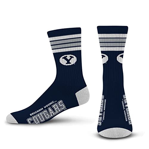 For Bare Feet NCAA BYU Cougars 4 Stripe Deuce Crew Sock Team Color LARGE