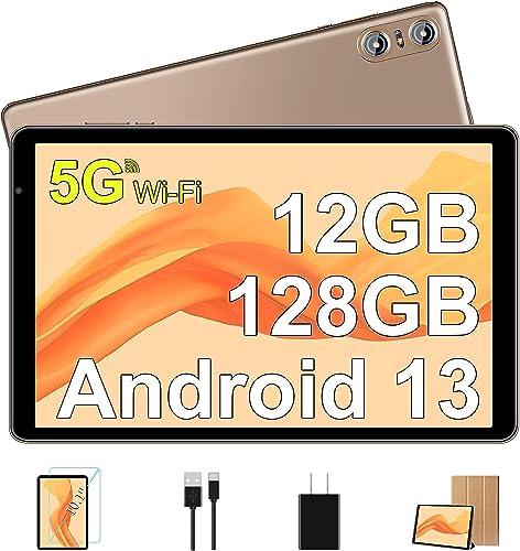 SEBBE Tablet 10 Inch Android 13 Tablet PC 12GB RAM + 128GB ROM TF 512 GB Octa-Core 2.0 GHz, Google GMS | Bluetooth 5.0 | 5G WiFi | 6000mAh | 1280 * 800 | 5MP+8MP, Tablet with Case Gold