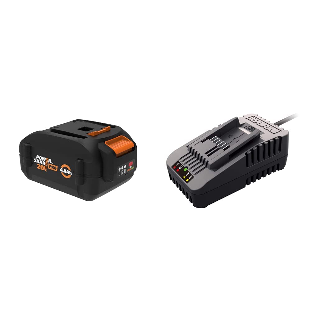 WORX WA3012 20V Power Share PRO 4.0Ah Lithium-Ion High-Capacity Battery, Black and Orange & WA3881 18V/20V Quick 60-Min Charger