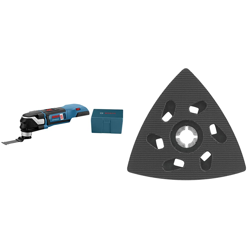 BOSCH 18-Volt EC Brushless StarlockPlus Oscillating Multi-Tool Bare Tool GOP18V-28N with BOSCH OSL350SPD Starlock Oscillating Multi-Tool Delta Sanding Pad
