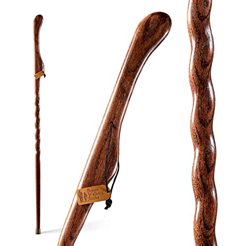 Brazos Handcrafted Wood Walking Stick, Twisted Oak, Hitchhiker Style Handle, for Men & Women, Made in the USA, Red, 58"