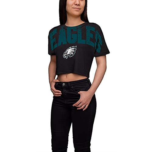 FOCO NFL Philadelphia Eagles Womens Distressed Wordmark Crop Top ShirtDistressed Wordmark Crop Top Shirt, Team Color, Medium
