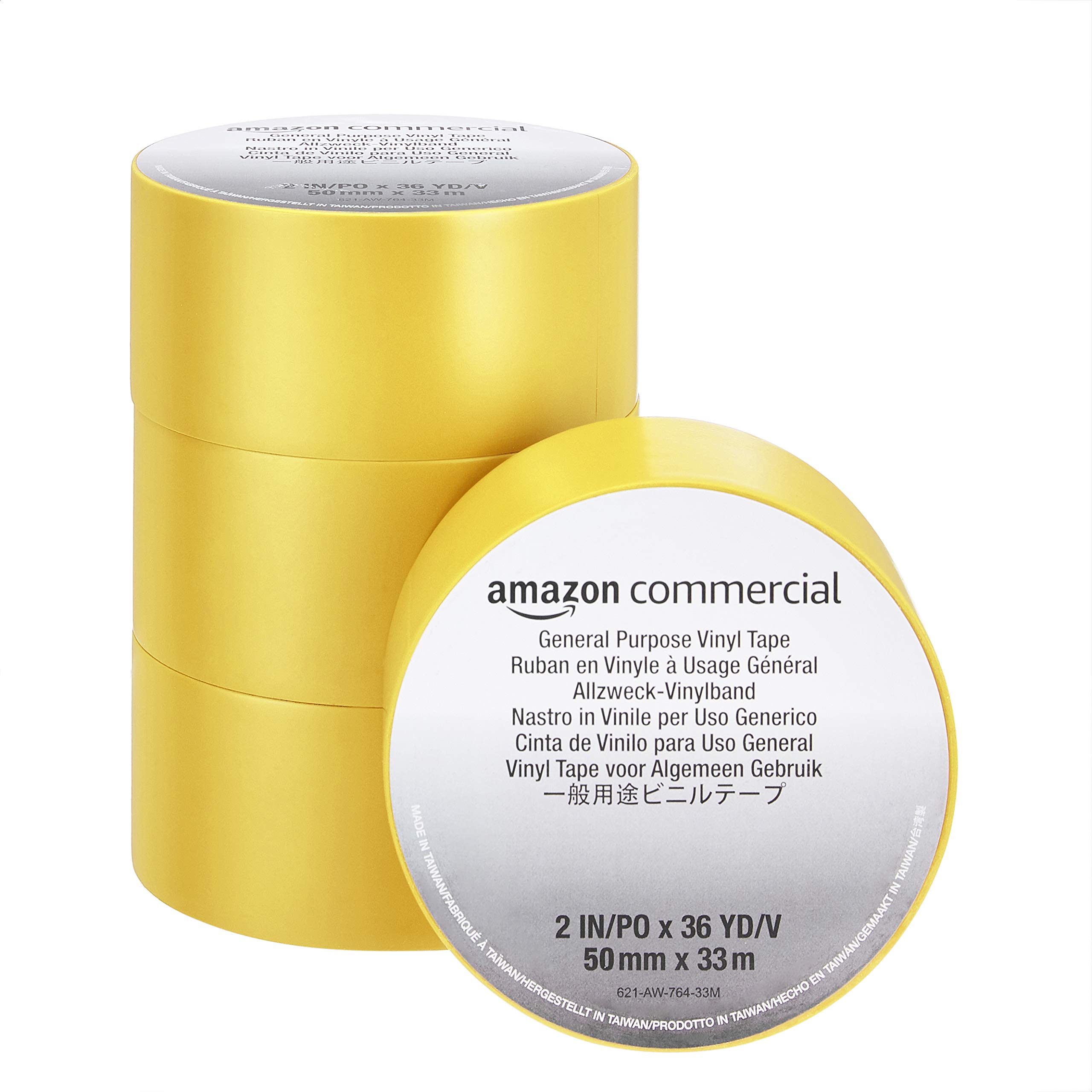 AmazonCommercial General Purpose Vinyl Tape, 0.13mm x 2" x 33M, Yellow - pack of 4