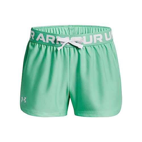 Under Armour Girls Play Up Solid Shorts , (958) Green Breeze / White / White , Youth X-Large