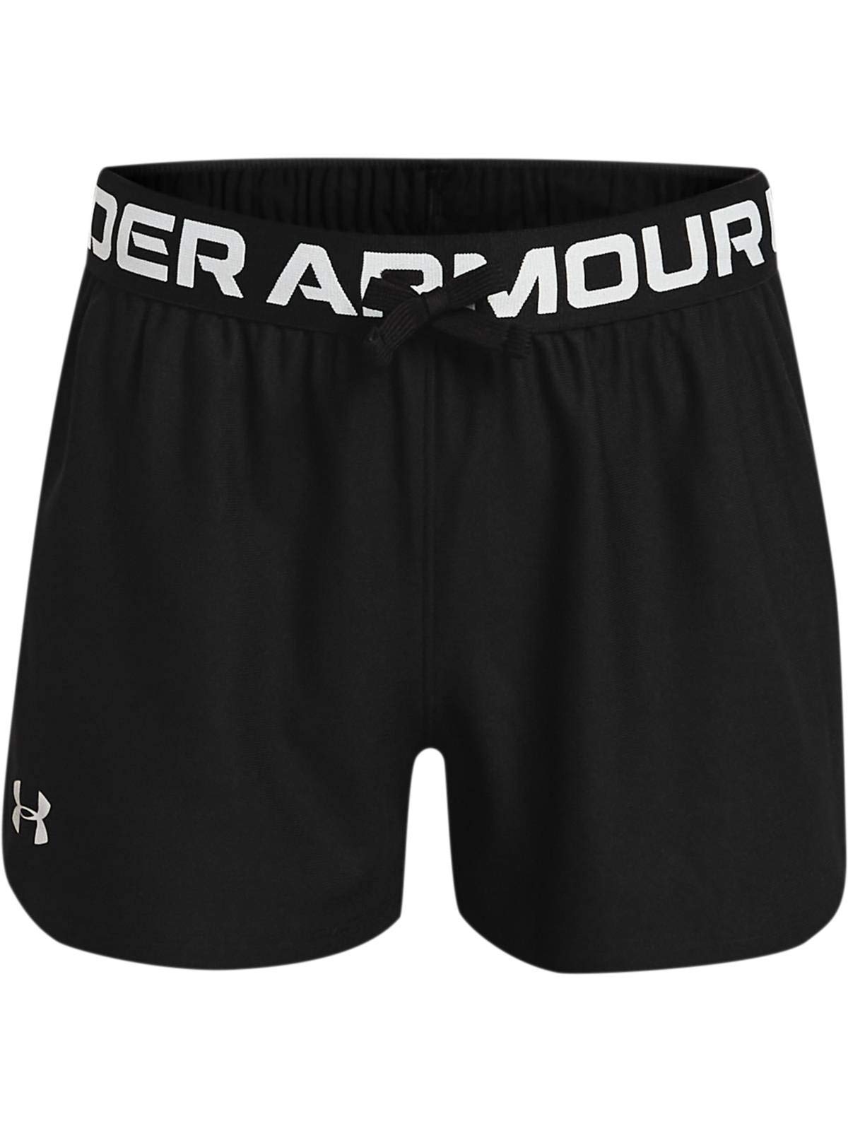 Under Armour Girls Play Up Solid Shorts , Black (001)/Metallic Silver , Youth Small