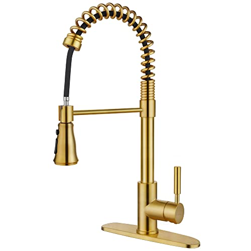 SOKA Kitchen Sink Faucet with Dual Function Solid Single Handle w/ Deck Plate Pull Down Sprayer Spring Kitchen Faucet , Brushed Gold (SK5001AR)
