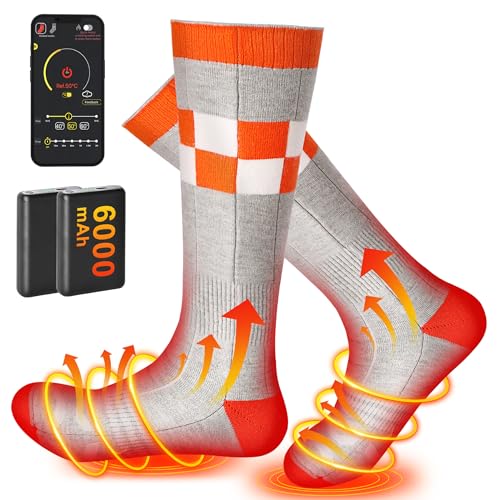 6000mAh Heated Socks for Men,Rechargeable Batteries Electric heated Socks with 360° Surrounding Carbon Fiber Warmth APP Control for Precision Temperature Settings Perfect on Camping, Hiking and Skiing