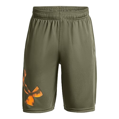 Under Armour Boys' Standard Prototype 2.0 Big Logo Shorts, (390) Marine OD Green / / Formula Orange, Large