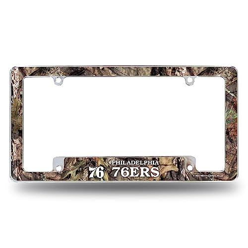Rico Industries NBA Philadelphia 76ers Mossy Oak 12" x 6" Chrome All Over Automotive License Plate Frame for Car/Truck/SUV