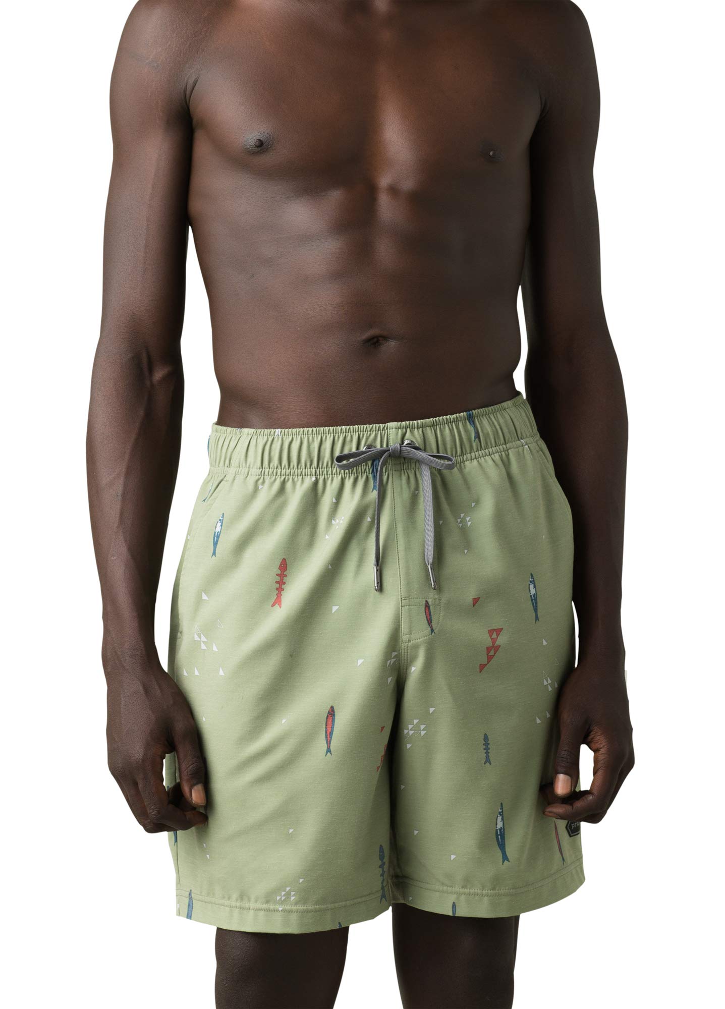 prAna Mens Metric E-Waist Zip 8"" Inseam, Pistachio Sardines, Large