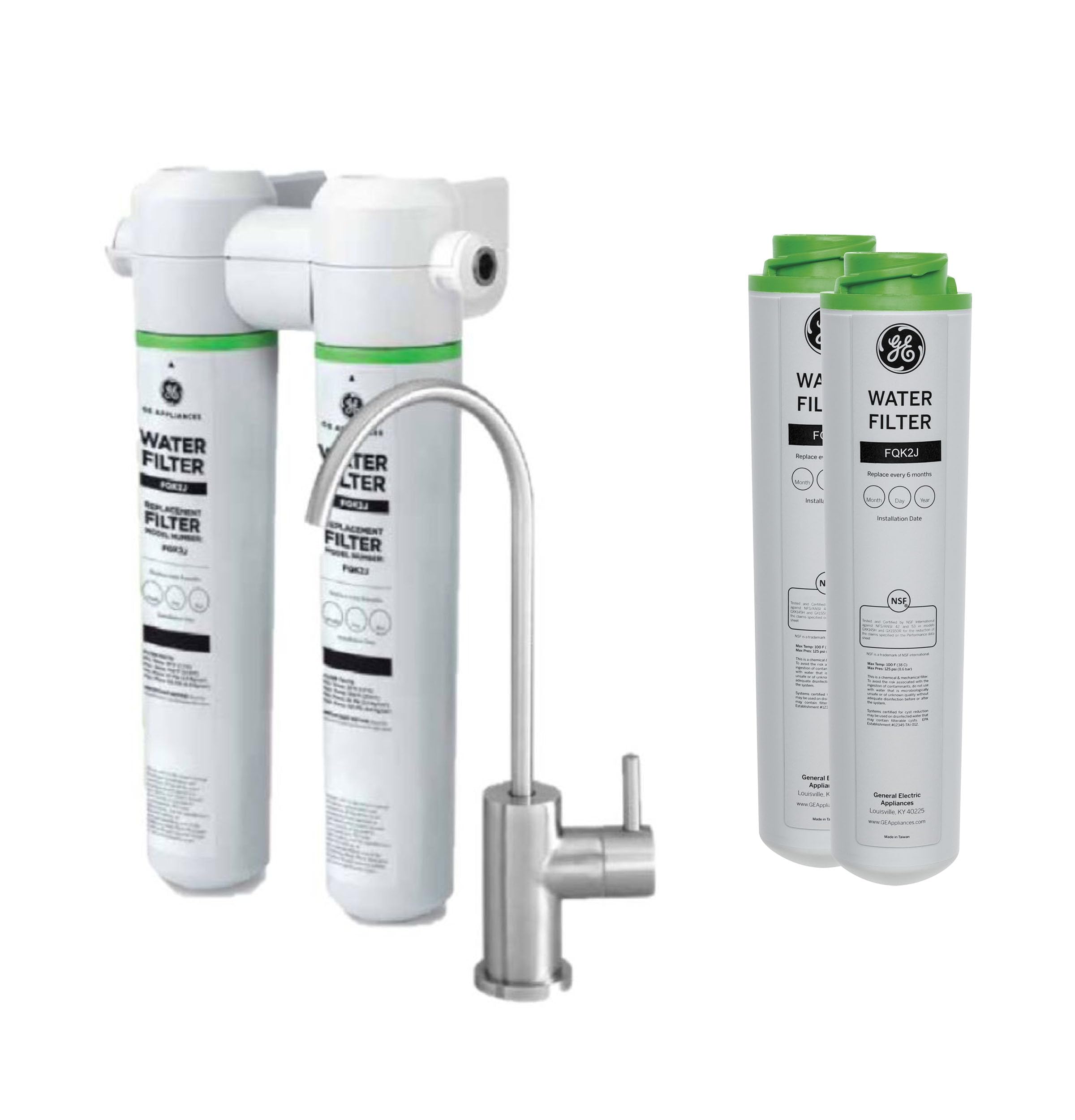 GE Dual Stage Under Sink Water Filtration System with Faucet & Filter | Reduces 95+ Impurities Including Lead, Chlorine, Arsenic | Easy Install | Twist & Lock Design | GXK255TBN, FQK2J