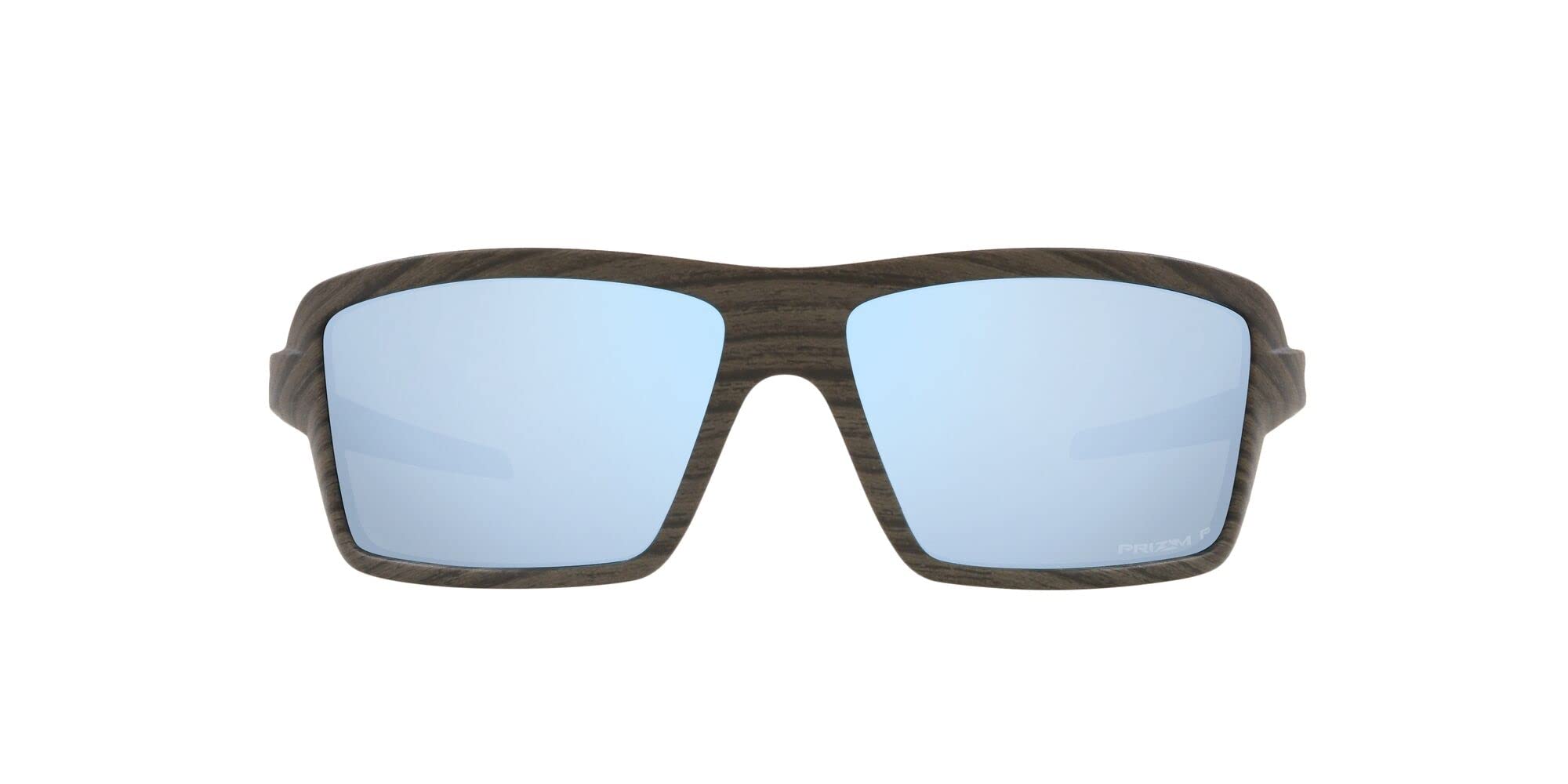 Oakley Men's OO9129 Cables Rectangular Sunglasses, Woodgrain/Prizm Deep Water Polarized, 63 mm