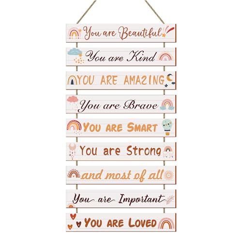 UBTKEY Boho Rainbow Room Decor - 9 Piece Set, Inspirational Wall Decor Hanging Plaques for Nursery & Princess Bedroom