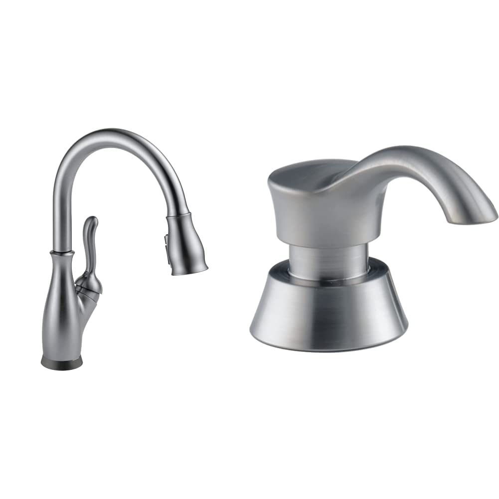 DELTA Faucet Leland Single-Handle Touch Kitchen Faucet with Pull Down Sprayer, Kitchen Sink Faucet with Kitchen Soap Dispenser, Touch2O, Magnetic Docking Spray Head, Arctic Stainless
