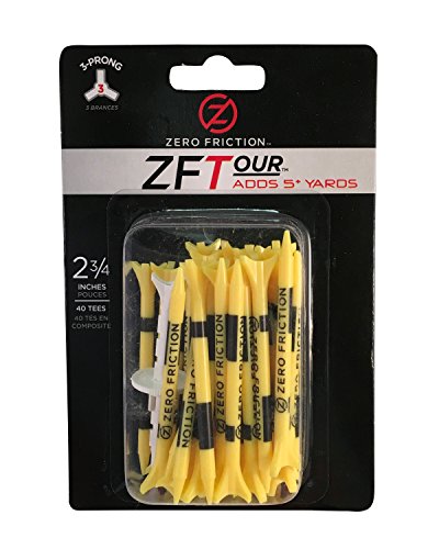 Zero Friction Tour 3-Prong Golf Tees (2-3/4 Inch, Yellow, Pack of 40)