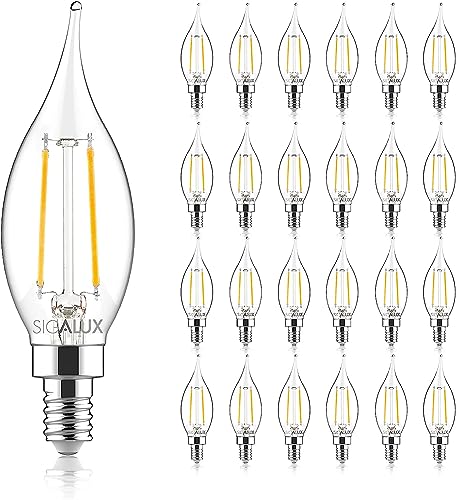 Sigalux E12 LED Bulb Candelabra Base 60 watt LED Chandelier Light Bulbs Dimmable, Flame Tip Candelabra LED Bulbs, 4.5W, 500LM 2700K Soft White, CA10 Candle Light Bulbs, 24 Packs