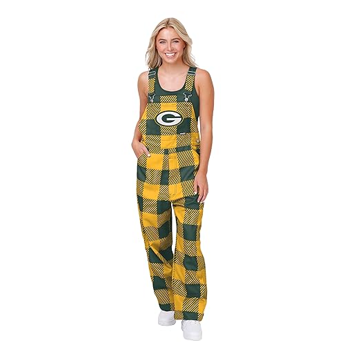 FOCO Green Bay Packers NFL Womens Plaid Bib Overalls - L