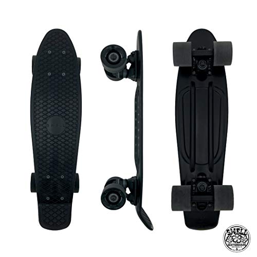 Swell Skateboards for Kids Ages 6-12 | Cruiser Complete Skateboard for Beginners, Boys, Girls, Youths, Teens, Adults College Students | 22 inch & 28 Inch Plastic Retro Mini Skateboard (22" Black Sand)