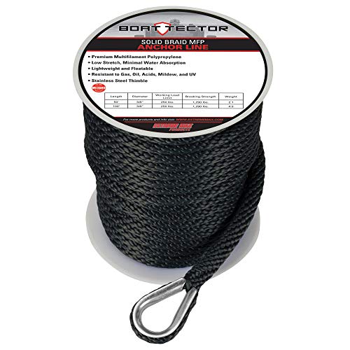 Extreme Max 3006.2057 BoatTector Solid Braid MFP Anchor Line with Thimble - 3/8" x 100', Black