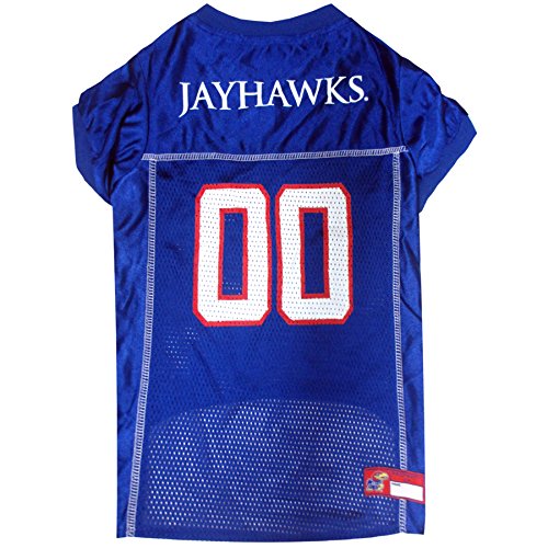 Pets First NCAA College University of Kansas Jayhawks Mesh Jersey for DOGS & CATS, X-Small. Licensed Big Dog Jersey with your Favorite Football/Basketball College Team