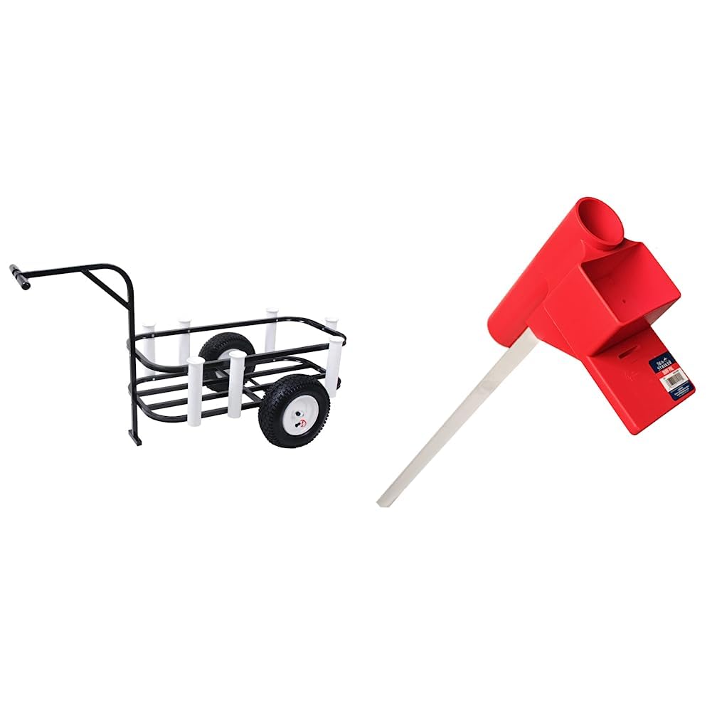 Sea Striker Deluxe Surf, Pier and Beach Cart – Outdoor Fishing Rolling Wheel Wagon and Sea Striker SP1 Surf Pal Sand Spike w/Bait Box Cutting Board