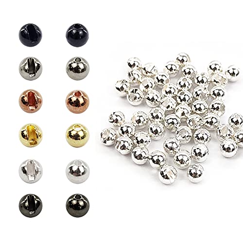 Think Fast Think Deep Aventik 50pc Tungsten Beads Slotted Fly Tying Materials 10 Colors / 5 Sizes Jig Hooks Fly Fishing (Silver, 5/32'' (4.00 mm))