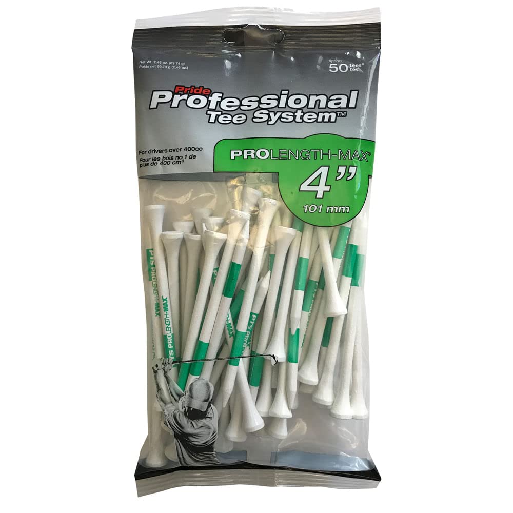 J&M PTS Pro Length Max Golf Tees (50-Count), White/Green, 4-Inch