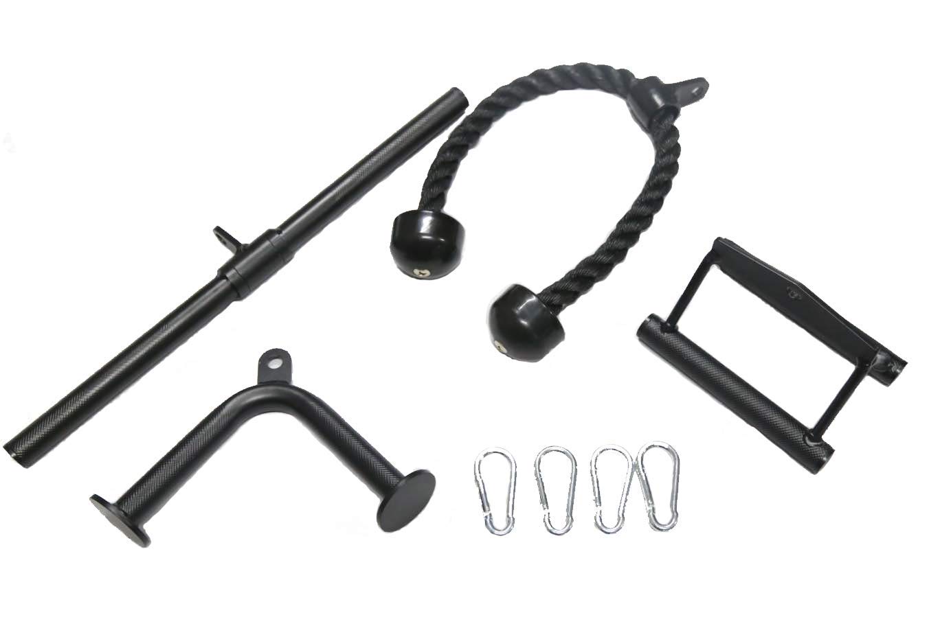 HulkFit Cable Attachments, Tricep Rope, Straight Bar, Seated Row, V Shaped Tricep Bar, Black