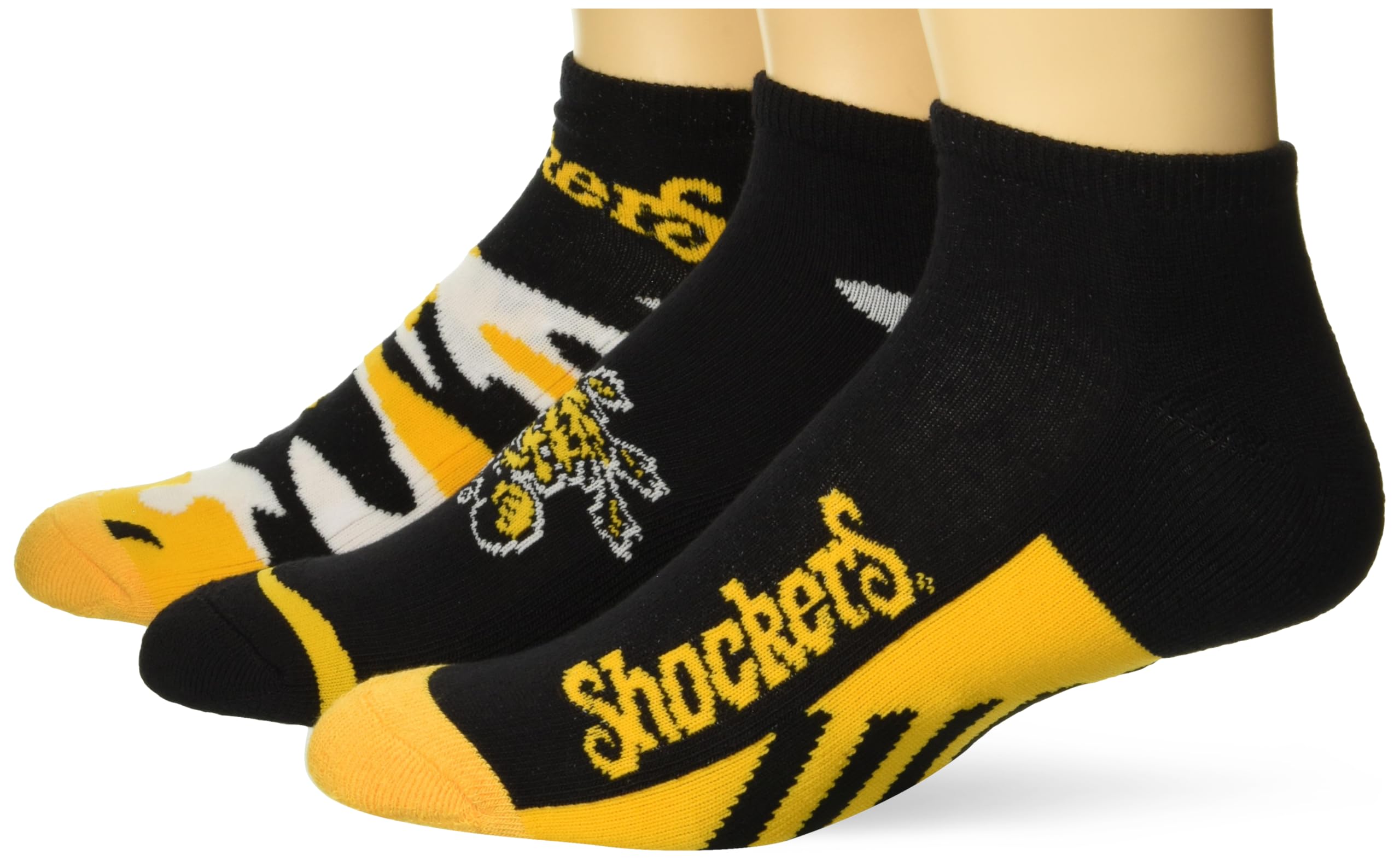 For Bare Feet NCAA Wichita State Shockers CAMO BOOM 3 Pack Ankle Sock Team Colors Large