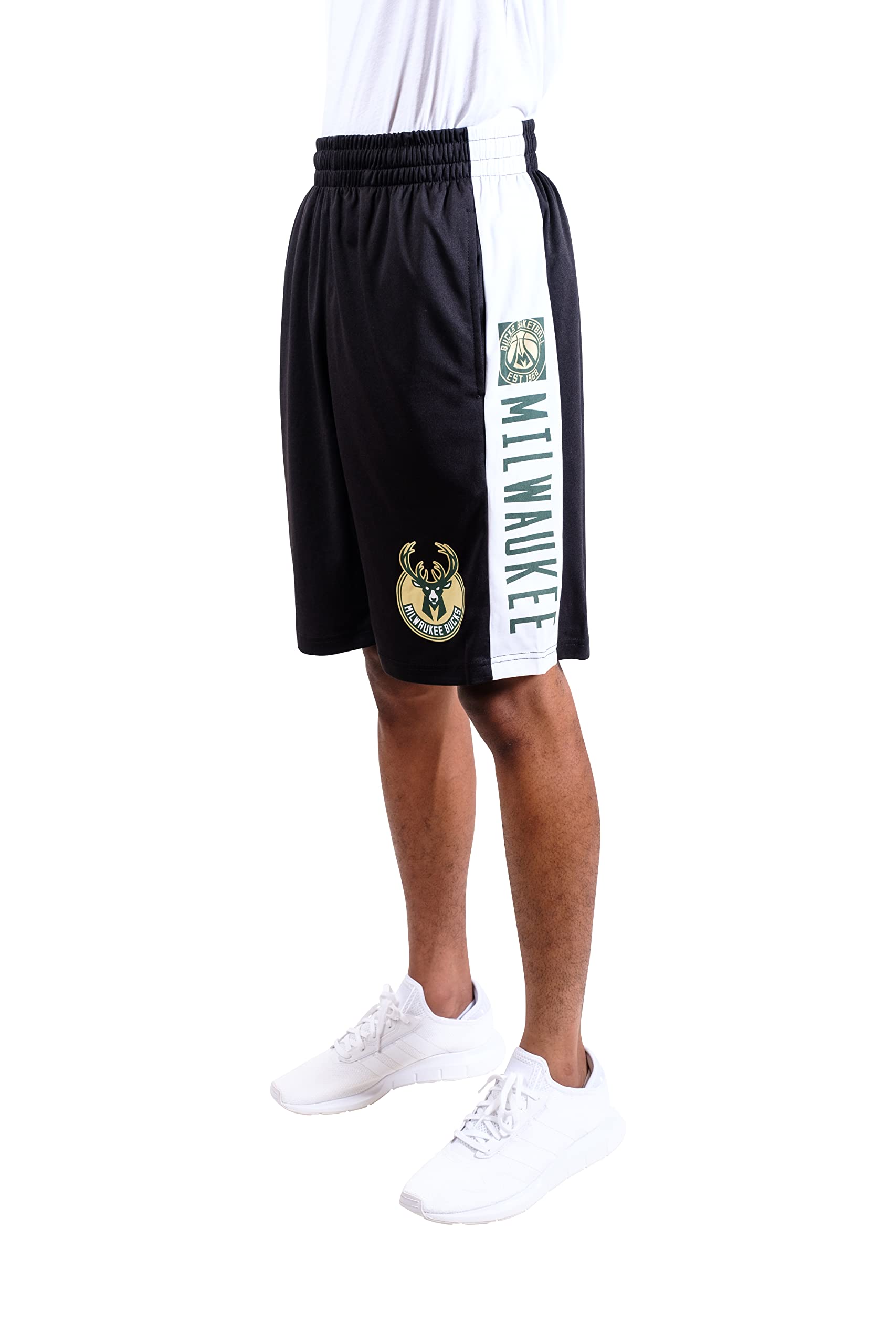 Ultra Game NBA Milwaukee Bucks Mens Mesh Basketball Shorts, Black, Large
