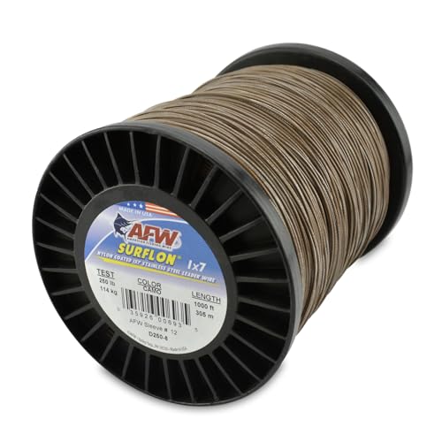 American Fishing Wire Surflon, Nylon Coated 1x7 Stainless Steel Leader Wire, 250 lb Test, 075" Diameter, Camo, 1000 ft