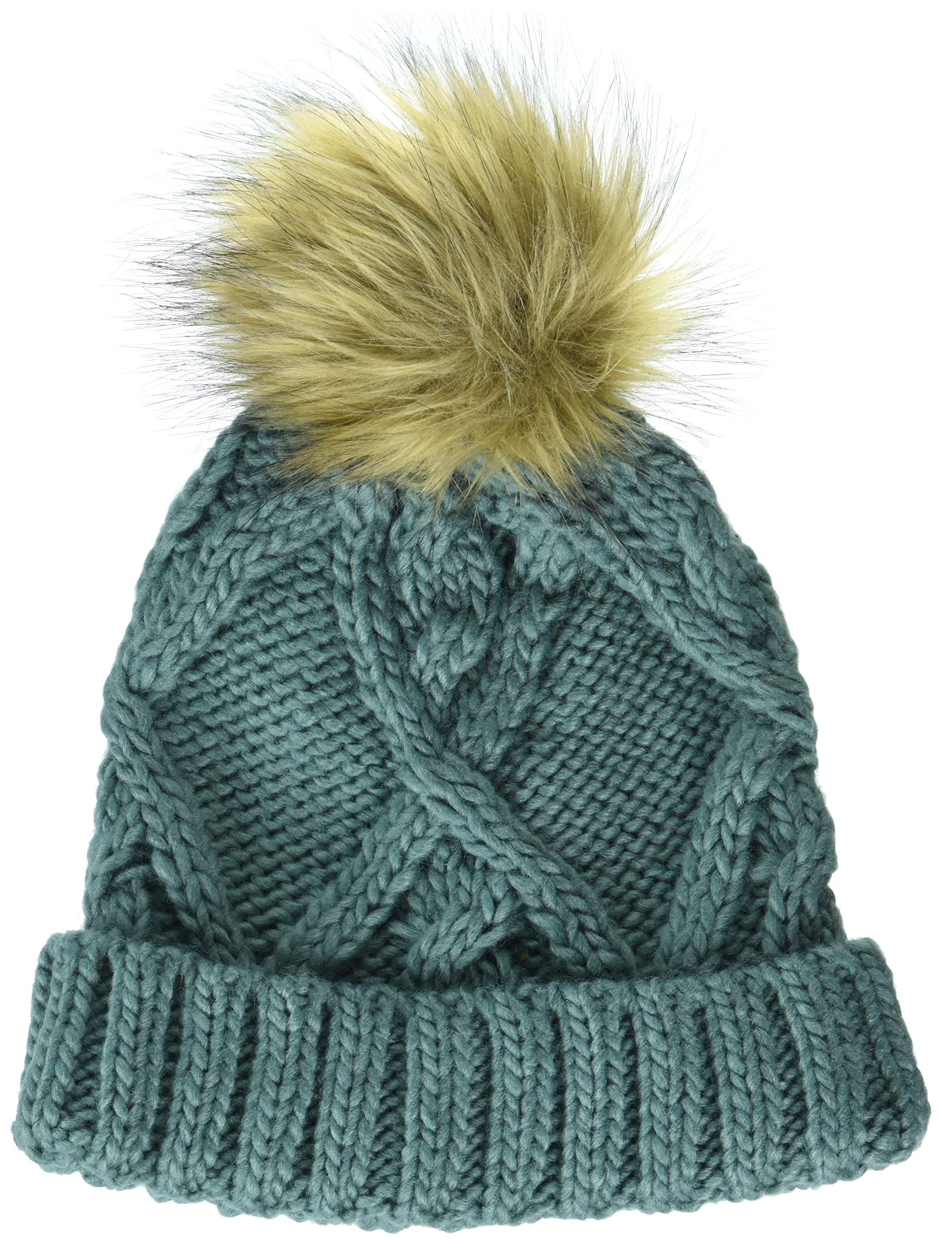 Amazon Essentials Kids' Knitted Faux Fur Pom Beanie, Dark Sage Green, One Size